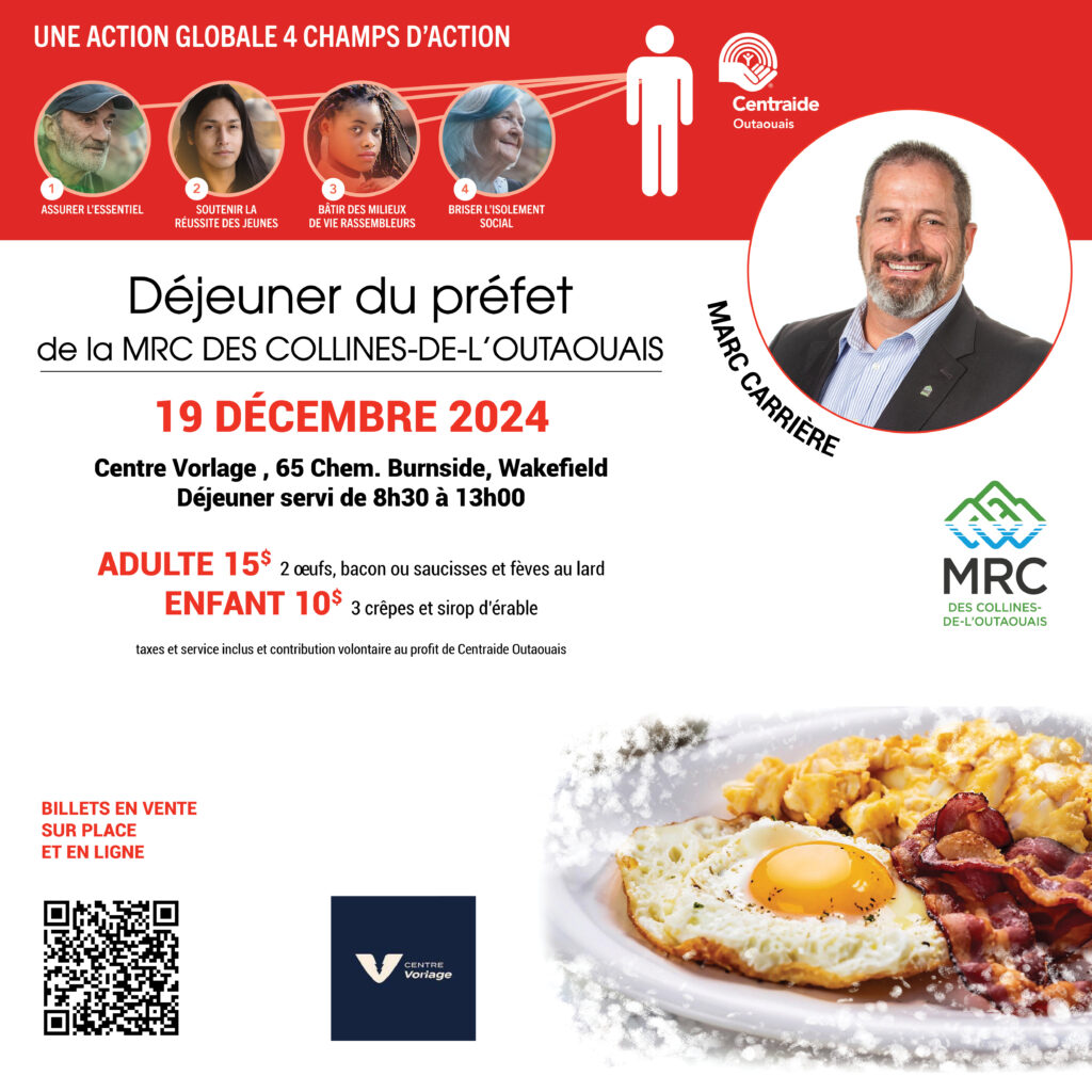 Vos dons seront remis aux organismes de la MRC des Collines-de-l’Outaouaispar l’entremise de la campagne de Centraide Outaouais.