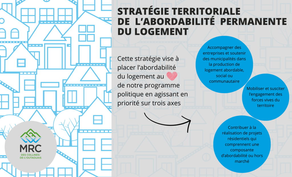 La MRC des Collines-de-l’Outaouais a le grand plaisir d’annoncer l’adoption à l’unanimité de la Stratégie territoriale de l’abordabilité permanente du logement dans la MRC des Collines-de-l’Outaouais par le conseil des maires lors de la séance tenue le 18 mai.