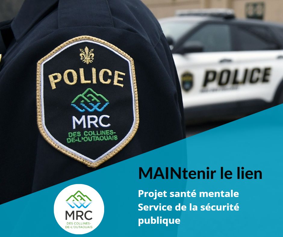 C’est avec beaucoup de fierté que la MRC des Collines-de-Outaouais vous informe de la mise en place du projet MAINtenir le lien au sein de son Service de la sécurité publique. Ce projet traitera exclusivement les dossiers de santé mentale dans la région de la MRC des collines.